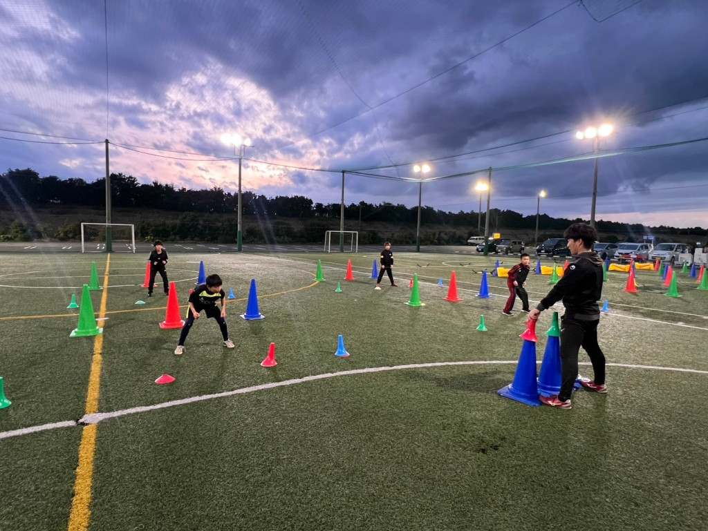 コーディネーション、アジリティ、スピード、クイックネスの大きい4つのテーマを中心として、強さ、バランス、加速力、体幹、柔軟性、判断、反応、楽しさをテーマに厳しく、強度あるトレーニングを行っております。