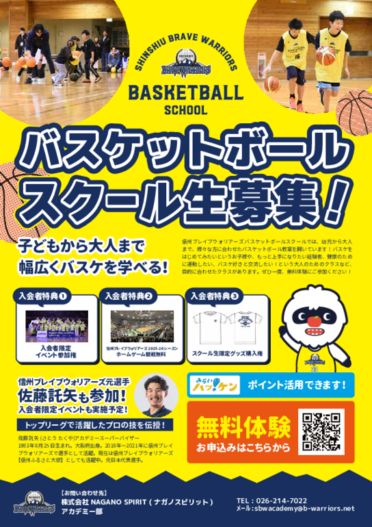 信州ブレイブウォリアーズユースでは、来年度の選手獲得の為、トライアウトを実施致します。長野県唯一のプロバスケットボールチームのユース選手に挑戦してみませんか。プロバスケチームによる、特別な環境と指導により、貴重な経験を積むことが出来ます。先ずは、トライアウトへの参加をお願い致します。