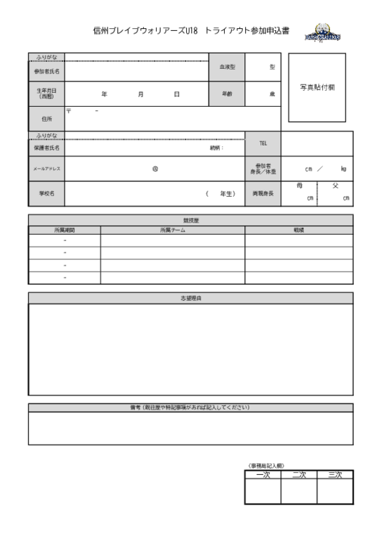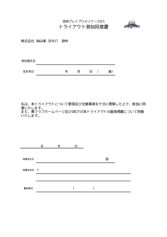 ※トライアウト参加申込書・参加同意書