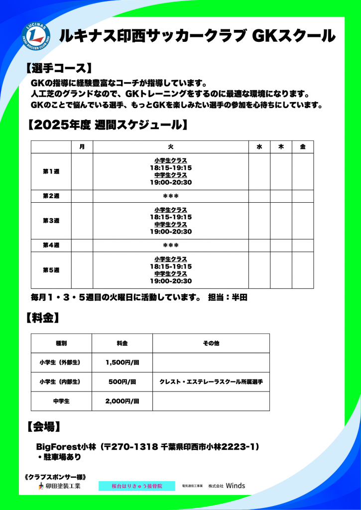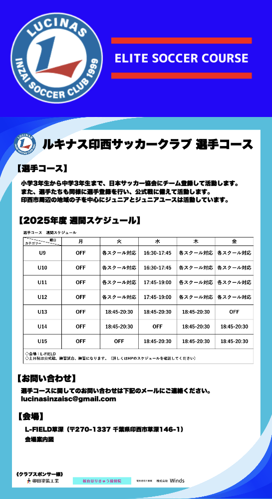 ルキナス印西は競技志向の選手コースとエンジョイ志向のスクールを合わせ持つハイブリッド型育成クラブです。