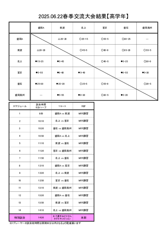 試合の結果をまとめましたのでご確認ください。
