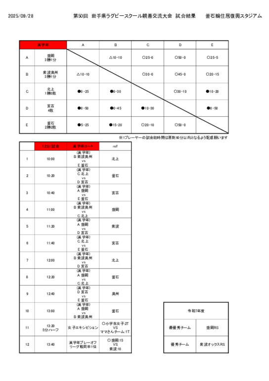 当スクールは紫波RSさんと合同でチーム名「ホワイト」として大会に挑みました。