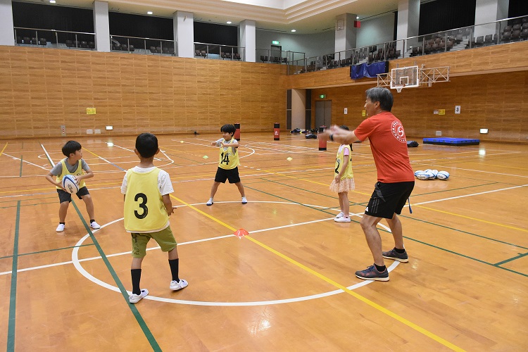 ラグビーの基本である「パス」「ラン(走る動き)」「コンタクト(ヒット)」中心のプログラムにしました。