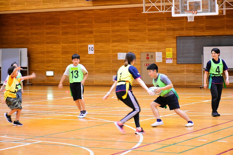 基本の動きしたあとは、それらのスキルを活かした「鬼ごっこ」や「タグラグビー」のゲームを行いました。
