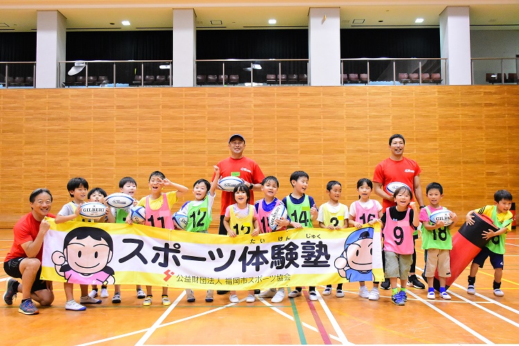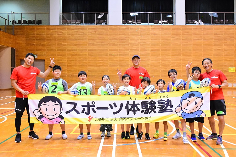 6月14日(土)、福岡市立早良体育館で行われた「スポーツ体験塾(ラグビー教室)」に永留コーチ、鬼束コーチ、濱里コーチが参加しました。