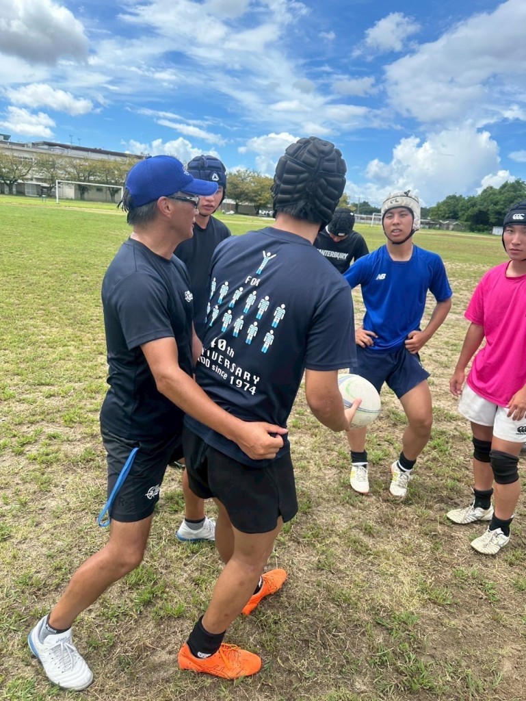 9月8日(月)、有明工業高等専門学校にて鬼束コーチと濱里コーチが有明高専ラグビー部の指導を行いました。