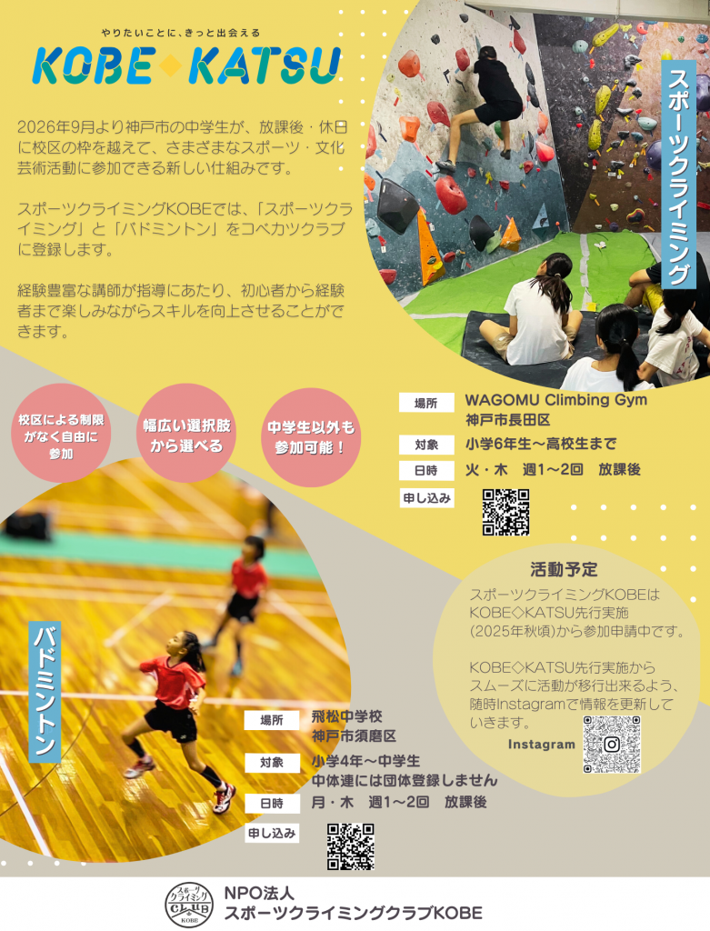 NPO法人スポーツクライミングクラブKOBE お客様窓口