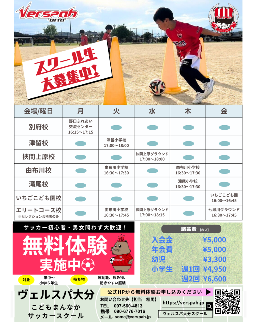 ヴェルスパ大分サッカースクールには、サッカーが楽しくなる環境があります。